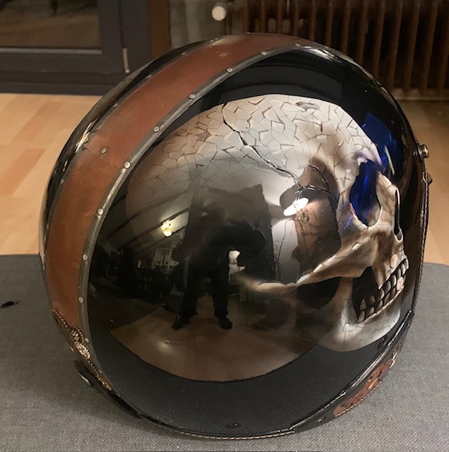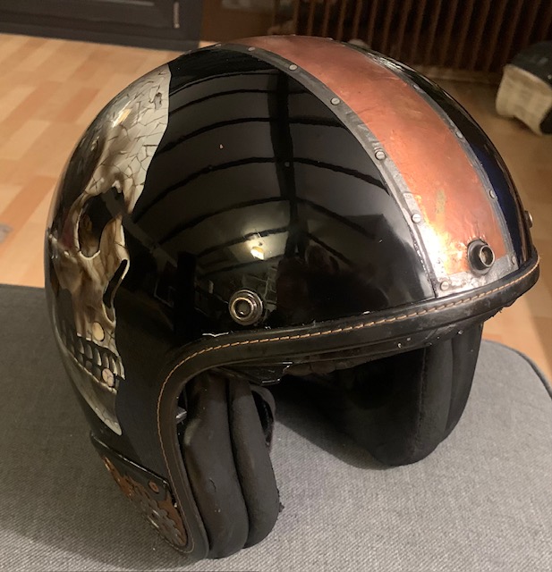Jethelm mit Mittelstreifen aus Kupfer und 3D-Druck Elementen an den Seiten.