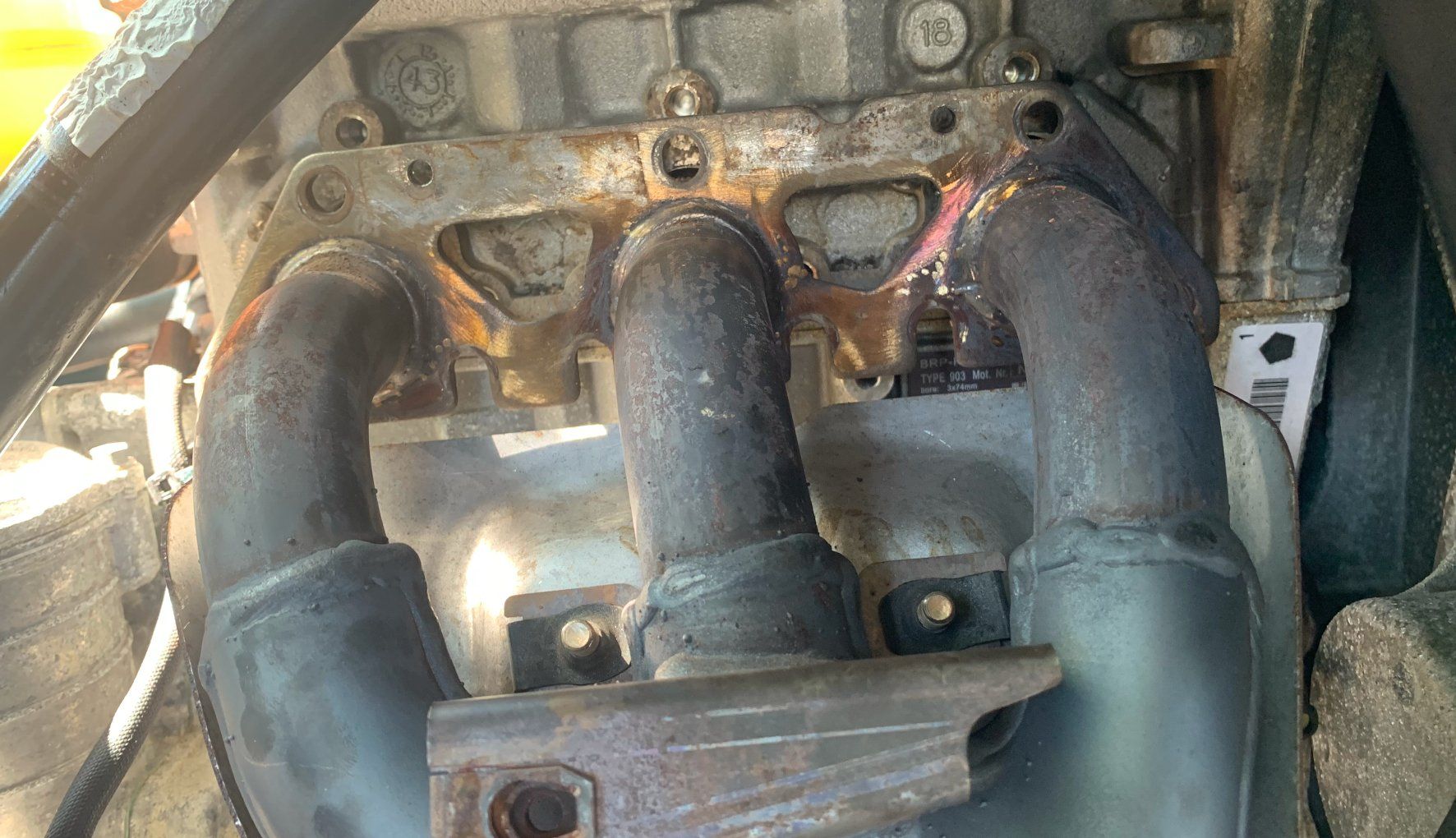 TÜV und AU Spätestens nach zwei Jahren steht der Weg zum TÜV an. Und dann kommen plötzlich die Fragen. Wie wird die AU gemacht? Wie werden die Bremsen geprüft? Wo ist eigentlich die Fahrgestellnummer? Grundsätzlich sollte man sich keine Gedanken darüber machen. Die TÜV-Prüfung wird von einem Prüfer für Motorräder abgenommen. Und auch die haben noch nicht viele RYKER geprüft. Solange sie keinen Mangel feststellen, können sie nichts machen, und wenn sie etwas aus Unwissenheit nicht prüfen können, ist es ihr Problem. In der Regel sind sie aber immer recht locker. Wie wird die Abgasuntersuchung (AU) gemacht? Normalerweise wird die AU bei einer gewissen Drehzahl gemessen. Das ist beim Ryker aufgrund der Vario aber nicht möglich. Ich habe schon die wildesten Aktionen gehört, die sich unerfahrene TÜV-Prüfer haben einfallen lassen. Die Bremse ziehen und Gas geben, was den Zahnriemen killen kann, oder das Aufbocken des Hinterrads, was sofort zu einem VSS-Fehler führt. Bei der AU muss der Prüfer das Messgerät auf die Drehzahl im Standgas, also 800 U/min, einstellen und messen. Wie werden die Bremsen geprüft? Ganz einfach: mit einer Probefahrt. Da wir am Ryker ja nur die Fußbremse haben, die auf alle Räder wirkt, kann dabei wenig passieren. Auf einen Prüfstand fährt der Prüfer nicht. Wo ist die Fahrgestellnummer? Das ist immer wieder eine spannende Frage. Auf der Suche stößt man auf einige Teilenummern, die in die verschiedenen Teile eingeschlagen sind. Jedesmal denkt man, man hätte die Fahrgestellnummer gefunden. Can-Am war sehr kreativ im Anbringen der wichtigsten Nummern. Man findet die Fahrgestellnummer wie folgt: Lenker links einschlagen. Hinter das rechte Vorderrad hinlegen. Von unten mit einer Taschenlampe schräg nach oben in Richtung Kühler leuchten. An einer Querstrebe des Rahmens, ziemlich weit vorne, ist die Fahrgestellnummer eingeschlagen. Meist ist sie stark verschmutzt und auf den ersten Blick sehr schwer zu erkennen. Man muß die Stelle mit einem Tuch säubern.