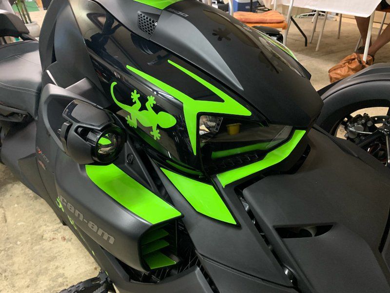 Michaela loves the color green and the gecko. She asked us to combine the color and her favorite animal into one theme and transform her 900 RYKER into a green gecko. She was very happy with the result.